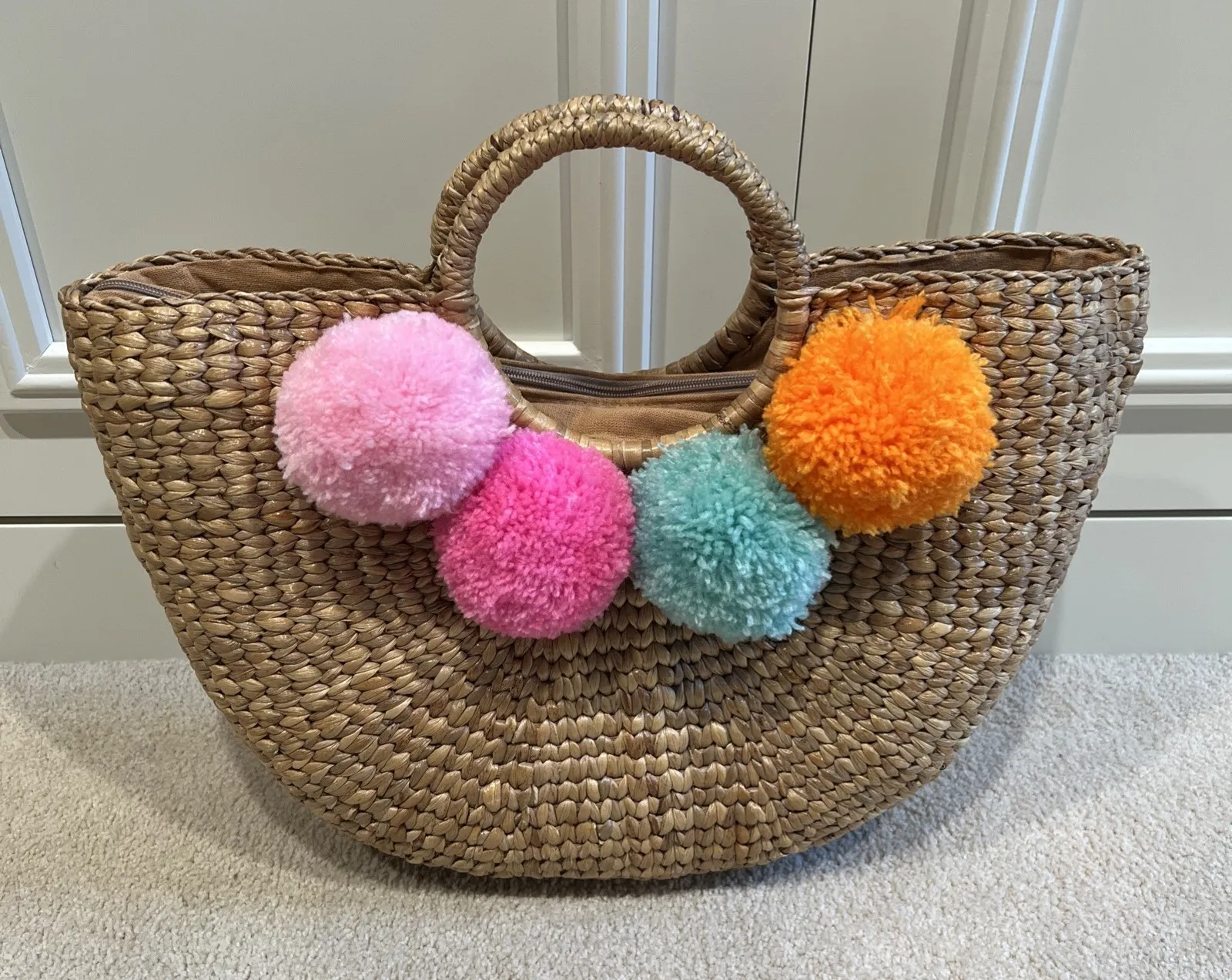 Bohopeach Woven Rattan Straw Bag With Pom Poms Beach Cruise Vacation Resort Boho - $35 - From Jennifer