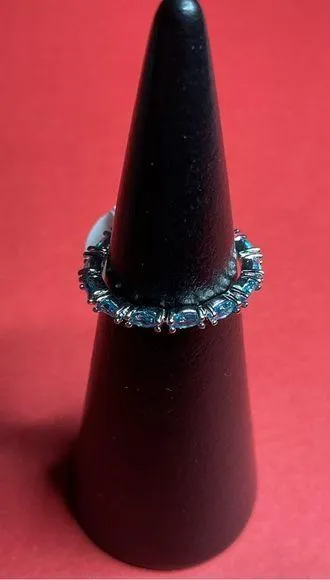 Bomb Party RBP4621 “Band of Beauty” Cubic Zirconia on Rhodium Size 6 Ring NWT Blue - $27 New With Tags - From Theia