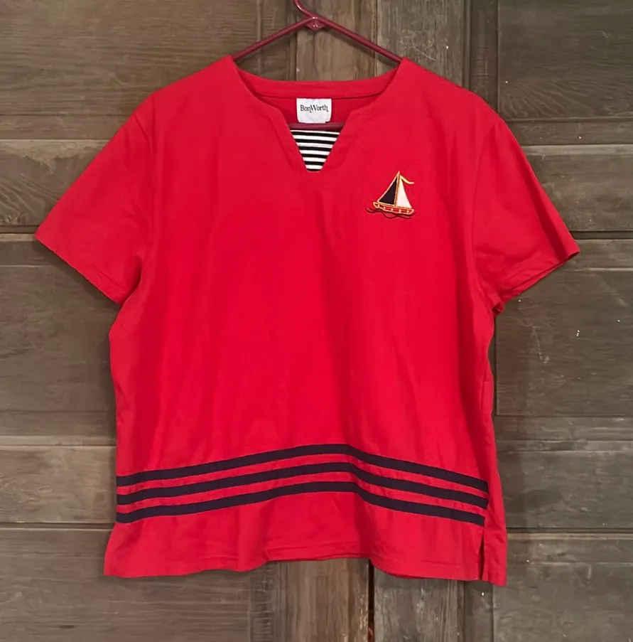 Bon‎ Worth Women’s Short Sleeve Red Shirt Size Large Nautical Blue - $7 - From Michelle