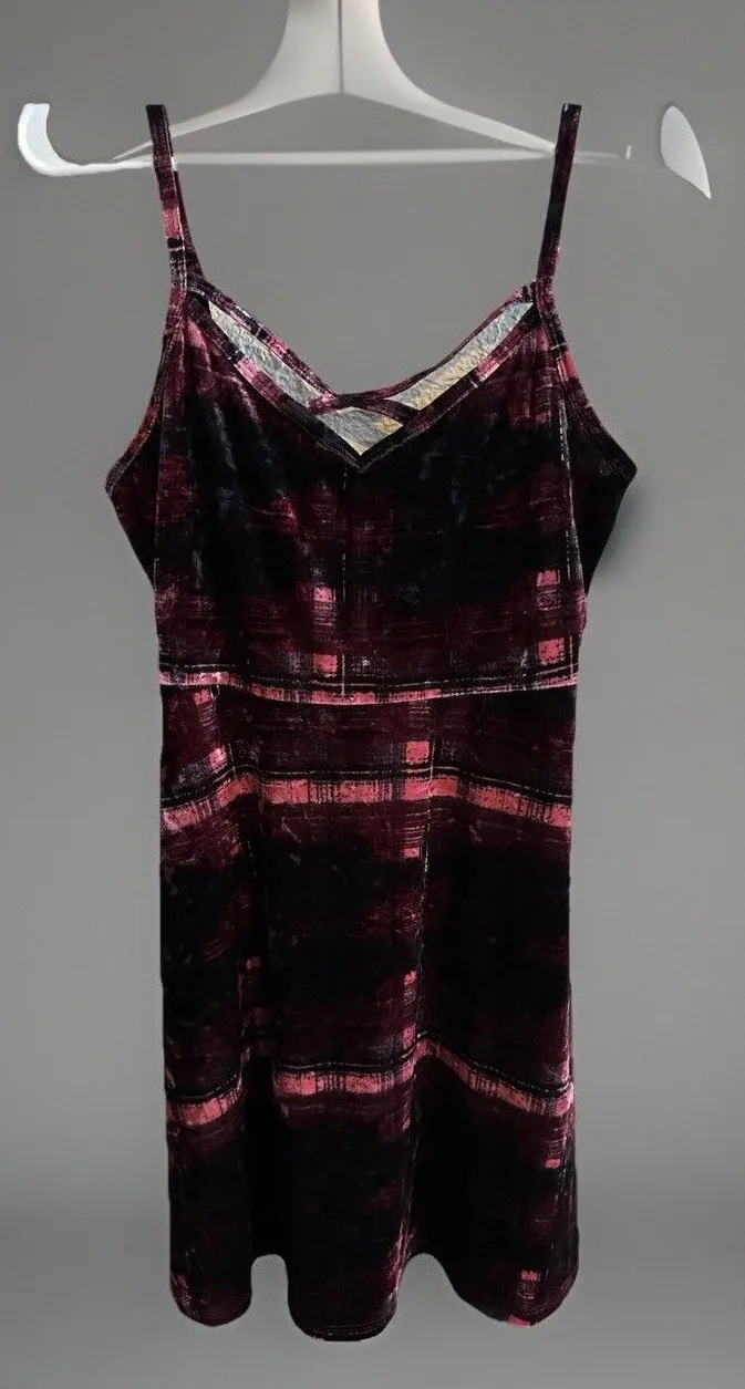BONGO VINTAGE 90s Whimsigoth Velvet Patterned Criss Cross Neck Mini Dress M Dark