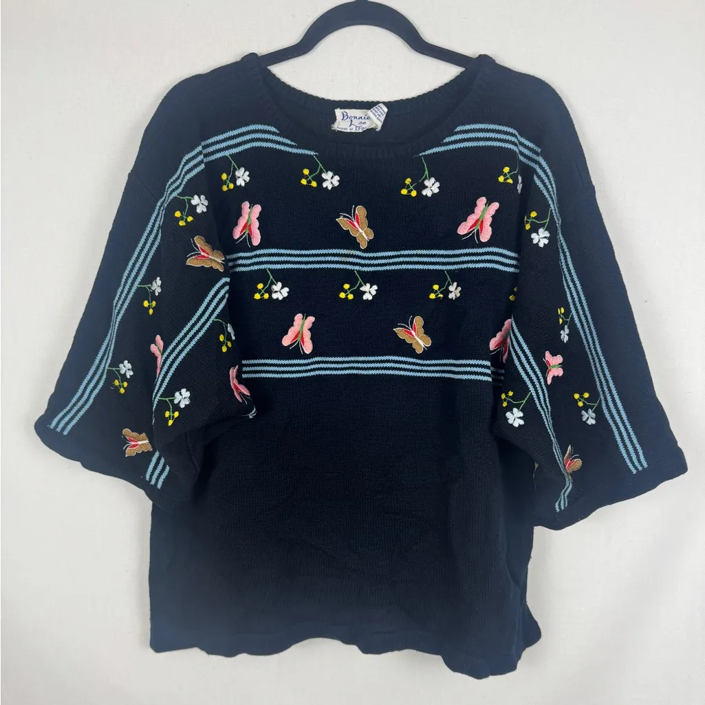 Bonnie Lee Vintage Sweater with Butterfly and Floral Embroidery Blue Size undefined - $42 - From Jessica