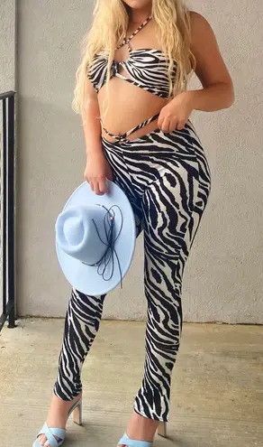 Worn once! Zebra print 2 piece set from boohoo size small! Stretchy material