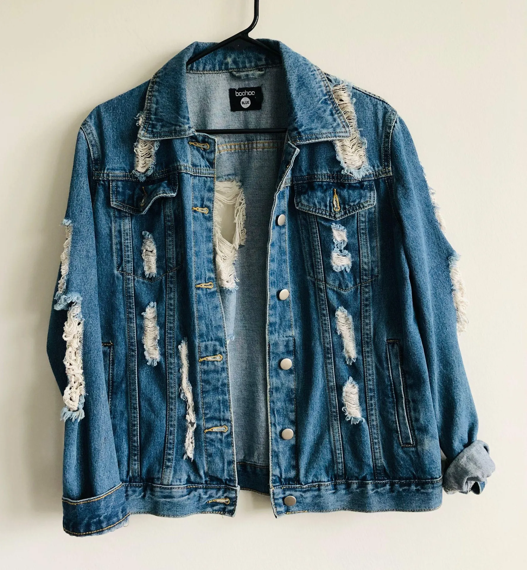 Thick high quality material, full length denim jacket. Very stylish and comfortable! Fits oversized... Show more