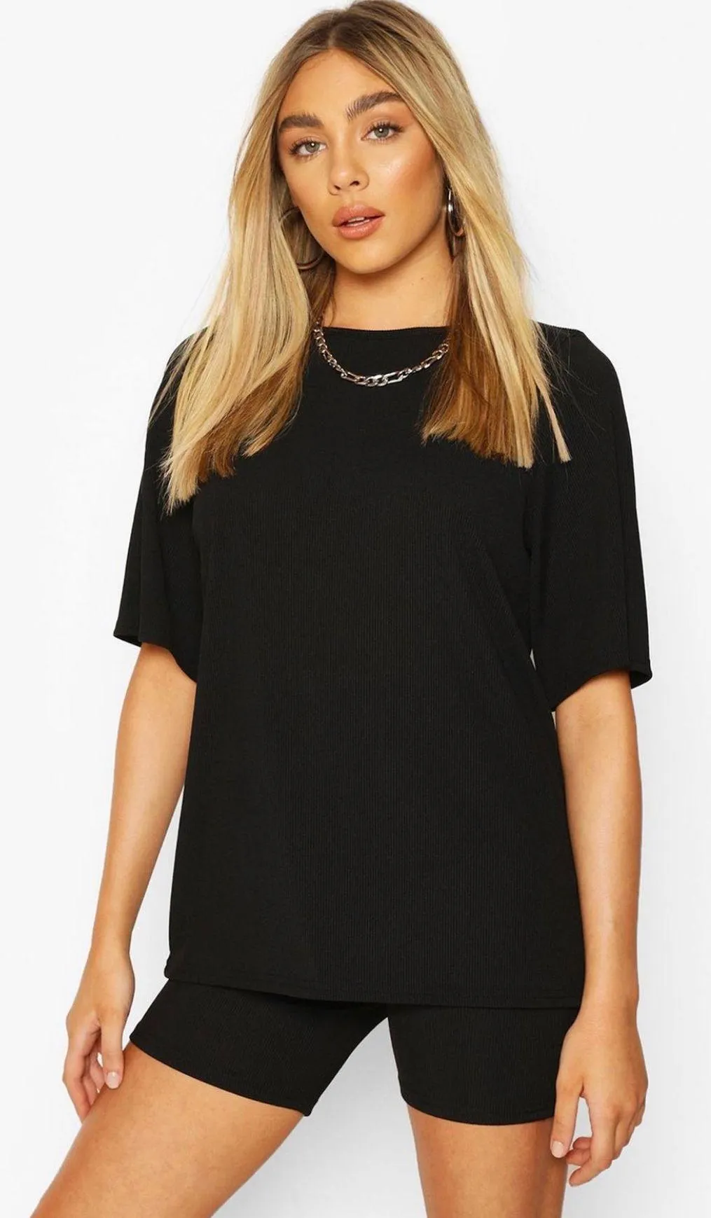 Oversized tshirt and biker shorts in like new condition. Ribbed/stretchy material. More details in l... Show more