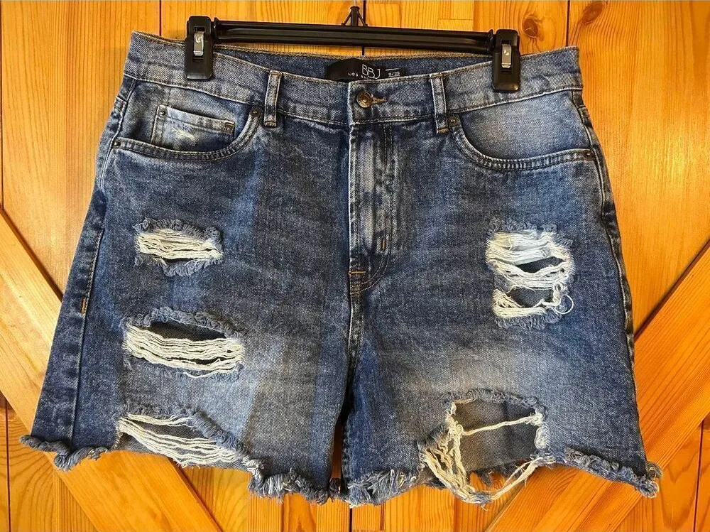 BBJ Boom Boom Jeans High Waisted Med Wash Ripped Denim Shorts Size 9/29 (8718) Blue - $23 - From Jessica