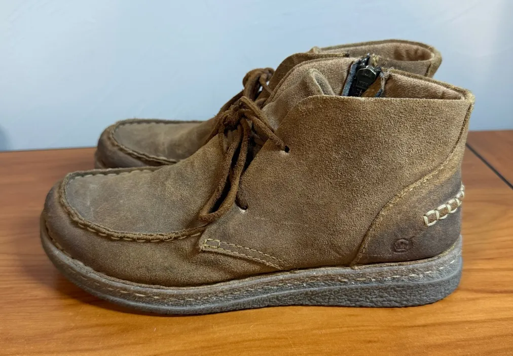 Born Analia Lace Up Suede Leather Boots Side Zip Chukka Distressed Brown Tan W8 Size 8 - $48 - From Abbey