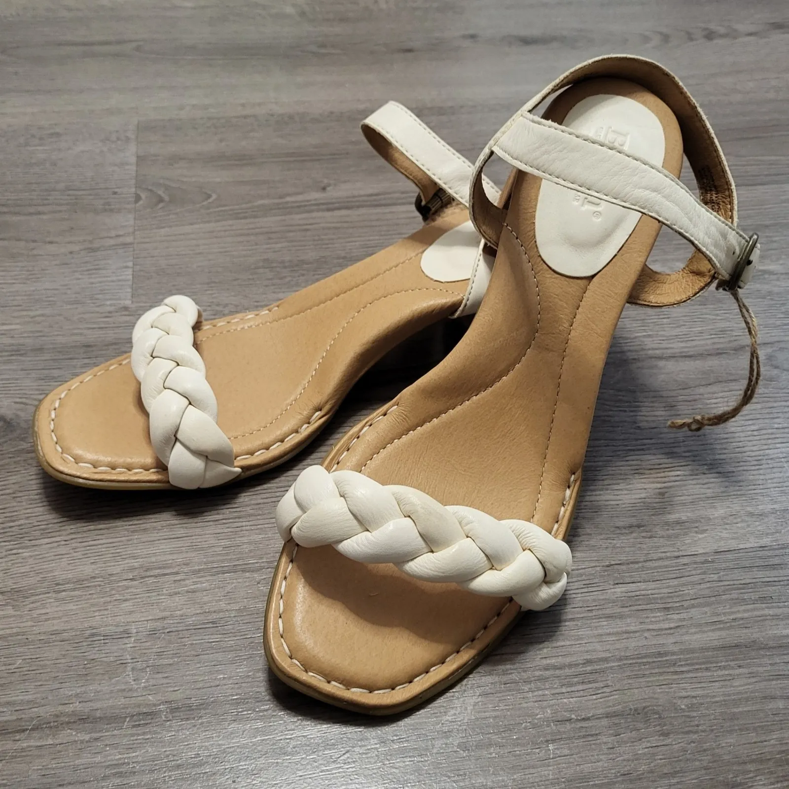 NEW WITHOUT TAGS/BOX WOMEN'S SIZE 11. VERY VERY MINOR DISCOLORATION ON TOE STRAP OF ONE SHOE FROM STORAGE, SEE CLOSE-UP PHOTO. Born white leather braided strap block heel sandals. These stylish sandals feature a comfortable cushioned footbed and an adjustable ankle strap for a secure fit. The stacked block heel provides a touch of height without sacrificing comfort. Perfect for casual outings, vacation, or a summer brunch. Keywords: Born shoes, leather sandals, braided detail, ankle strap, block heel, summer fashion, casual wear, vacation style, day to night, comfortable heels, womens footwear, white sandals Pre-owned in good condition with plenty of life left see all photos for condition, signs of wear and measurements. If unsure about size, please compare measurements to similar item you already own. As with all pre-owned items please expect minor signs of wear.
