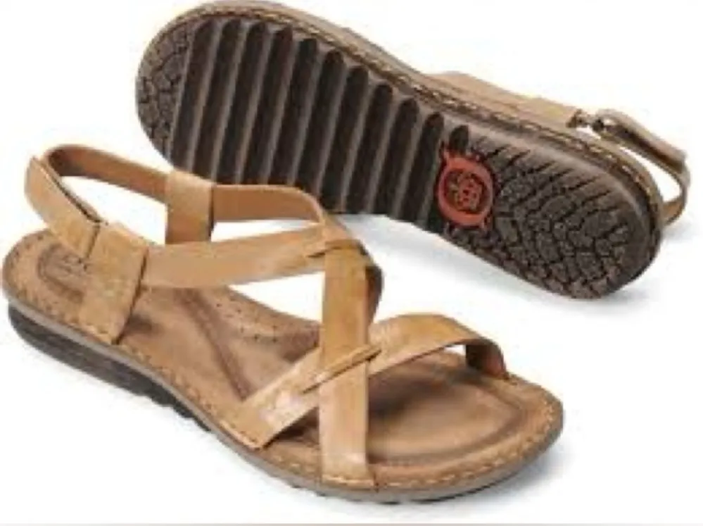 Born Rainey Strappy Sandals tan leather women’s size 10/42 casual boho cottage Very good preowned... Show more