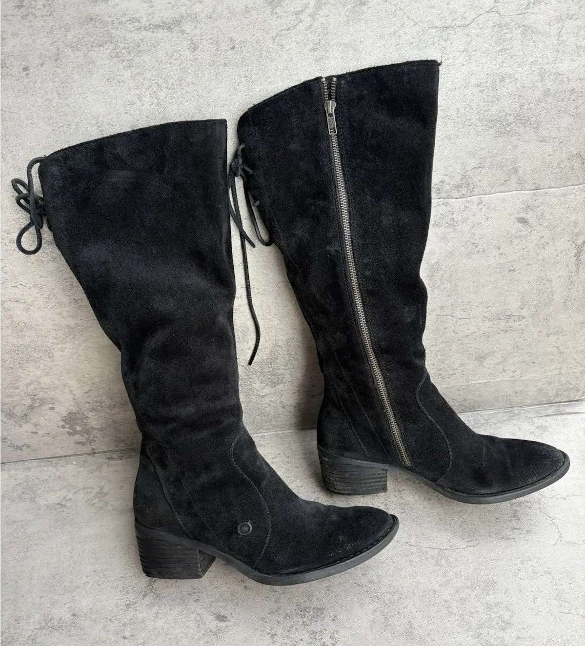 Born Womens Felicia Boot Size 8.5 WIDE CALF Tall Black Suede Block Heel Distress - $39 - From Ashley