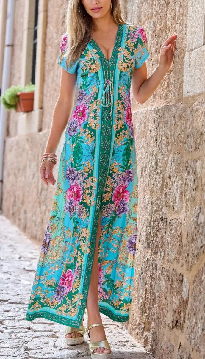 This Boston Proper maxi dress is a beautiful addition to any wardrobe! The colorful floral print is eye-catching and perfect for spring or summer. The plunging neckline and empire waist create a flattering silhouette. It is gently used and in excellent condition. Features: - Brand: Boston Proper -size Small -Size: Please refer to measurements for accurate fit. -In excellent condition and comes from a smoke-free home. - Style: Maxi Dress -Side Pockets -Short sleeves - Pattern: Floral - Neckline: Plunging - Waist: Empire -Polyester/Spandex Perfect for a party, vacation, or a special occasion! This dress is sure to turn heads and brighten up your day! Don't miss out, buy it now!