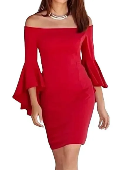 Boston Proper Off the Shoulder Red FRENCH KISS Flutter Sleeve Dress NWT Measurements Laying Flat!! S... Show more