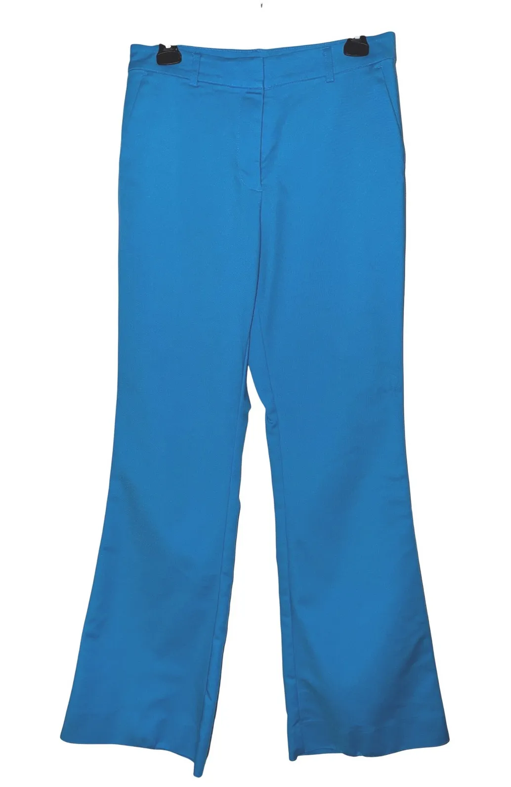 Boston Proper women's blue flare leg dress pants. These classic trousers offer a flattering silhouette with a subtle flare at the hem, perfect for a polished look. Designed for comfort and style, they feature a mid-rise waist and a clean finish. Ideal for business casual settings or an evening out. Style: Dress Pants Department: Women Material: 59% modal, 38% Polyamide, 3% Elastane Leg Style: Flared Type: Pants Fabric Type: Knit Features: Pockets, Stretch Closure: Zip, Button Pattern: Solid Occasion: Workwear, Casual Front Type: Flat Front Season: Spring, Summer, Fall Unit Type: Unit 16" flat waist measurement 10" rise 31" inseam 10" leg opening Keywords: flared trousers, blue pants, dressy pants, workwear, career pants, tailored trousers, smart casual, business attire, classic fit, everyday wear 6914