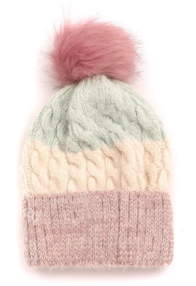 Boutique Cable knit kwaii cozy vibes Soft color block stripe knit beanie Pom Pom Pink - $25 - From Candice