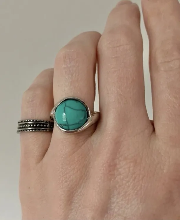 Boutique “Dixie” Southwestern Blue Turquoise Silver Ring 6.5 Cowgirl Maximalist •Condition: Old stock/ new without tags/ vintage. •Details: Lovely costume jewelry ring in silver tone with a round faux turquoise center, approximately size 6.5. Western fashion meets eclectic, bohemian vibes. •Offers ALWAYS welcome, don’t be shy! •The names in quotations of titles are part of my inventory process/aesthetic and are not indicative of a marking or brand. •Keywords: ~ Boho | Boheme ~ Clean Girl | Silvercore ~ Cottagecore ~ Light Dark Academia | Romantic | Mob Wife ~ Silvery Gunmetal Metallic Gray Blue Aqua ~ Timeless Essential | Capsule Wardrobe ~ Maximalist ~ Soft Grunge | Punk Prep | Whimsigoth | Earthy ~ Femme ~ Quiet Luxury | Classic Style ~ Neutral ~ 80s 90s | Y2K | Retro Mod ~ Wedding Guest Bridal Bridesmaid | Party | Business Office Wear ~ Gift Birthday Anniversary | Woman Wife Girlfriend Fiancé Mom Mother Sister Grandmother