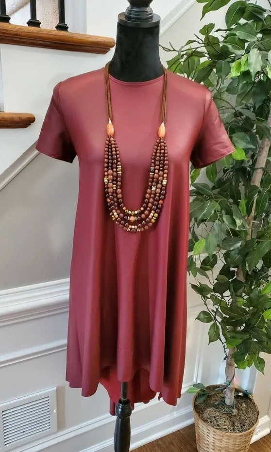 Boutique Eien Women Burgundy Polyester Short Sleeve Round Neck Knee Length Dress S Product Detail... Show more