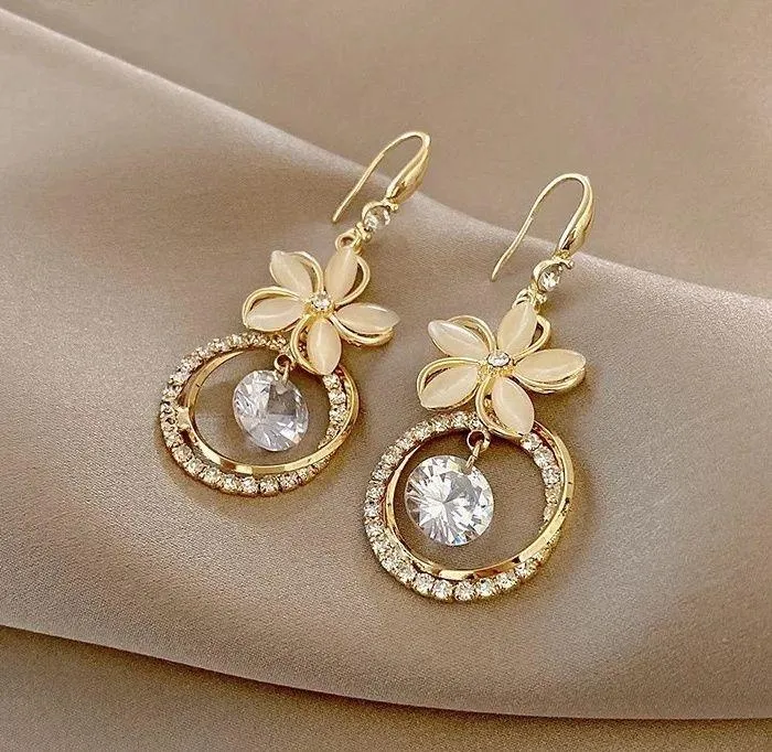 Korean Vintage Crystal Zircon Flower Round Gold Drop Earrings - $24 (40% Off Retail) New With Tags - From Lyn
