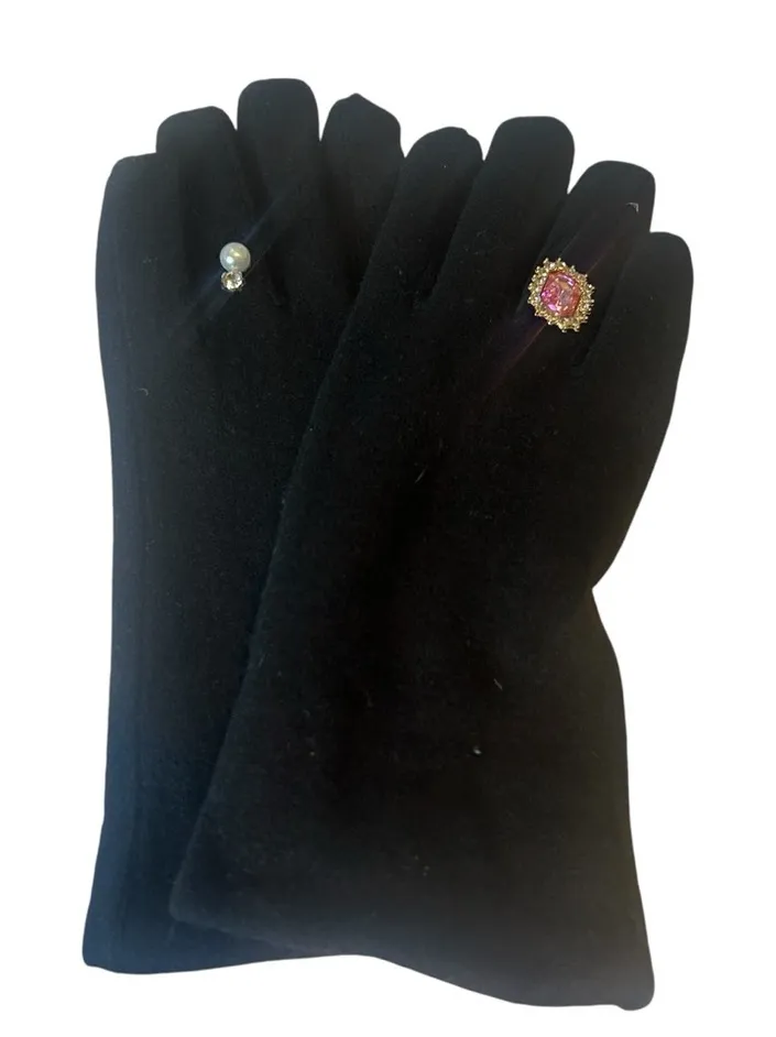 wool blend retro to vintage old money regency rich aesthetic emo retro dark romance cosplay dress up baroque pristine condition size Large/ fits most light /screen touch on pointer finger very soft faux fur inside embellished with costume jewelry opulent opera old money cozy cabin dress up trad wife delicate dress up cosplay dark romantic