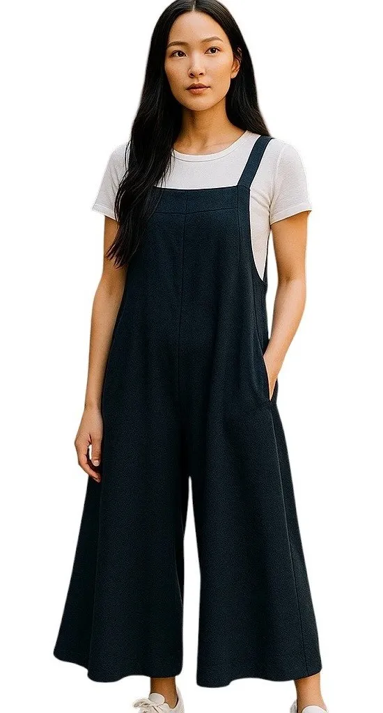 Boutique Linen Blend Overall Jumpsuit Navy Blue Size 2XL Minimalist Bohemian Cut - $26 - From Amanda