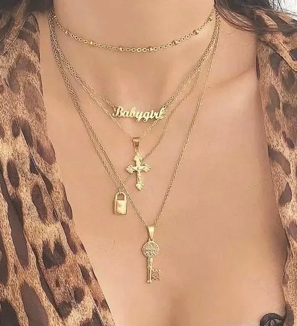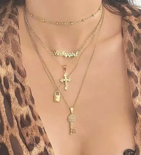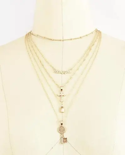 Boutique Lock Key Cross Pendant Multilayered Chain Necklace Gold - $15 New With Tags - From Tendzi