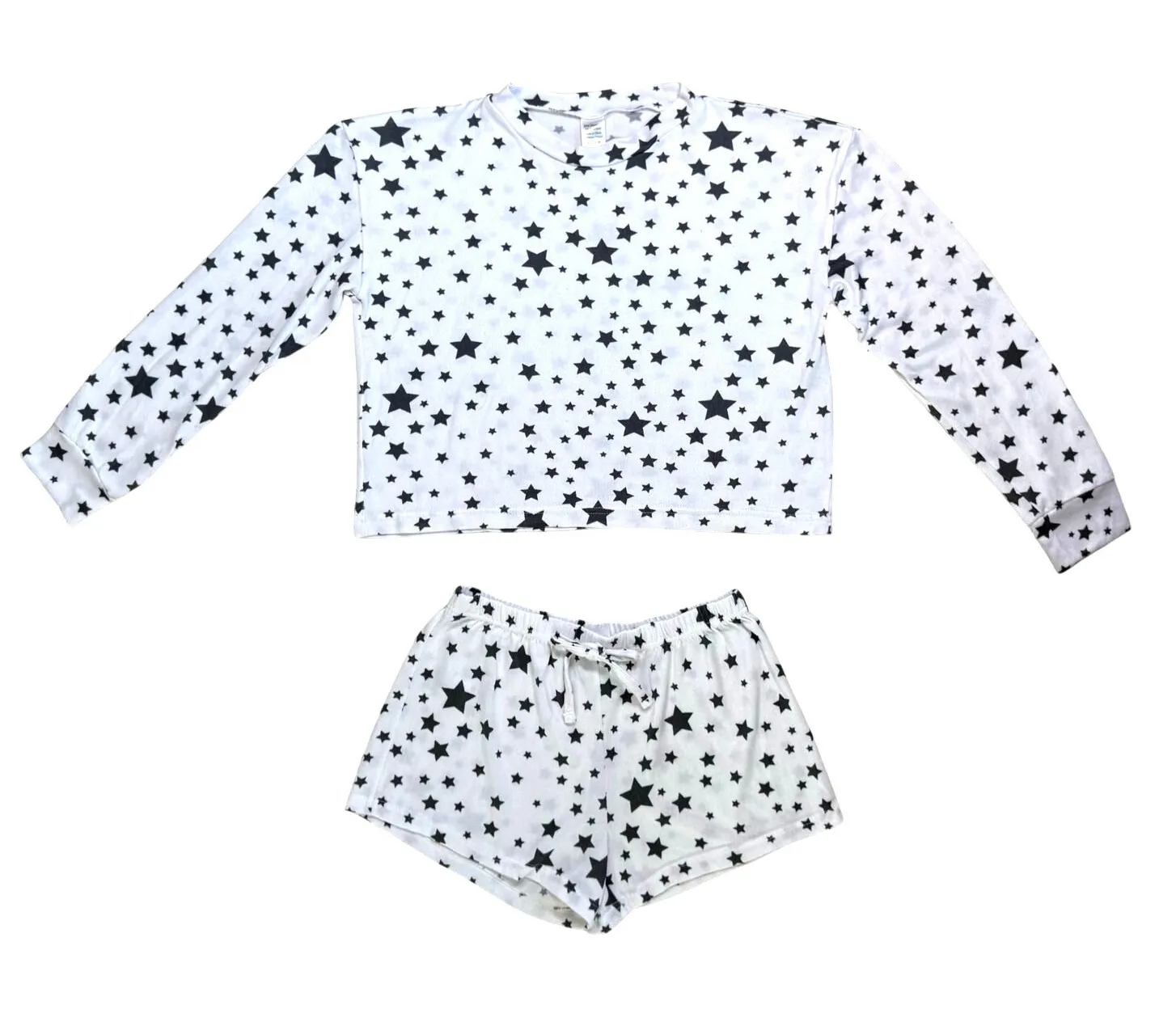 Crew Neck Long Sleeve Shirt & Shorts Set White & Navy Blue Star Print Juniors Size Medium Excellen... Show more