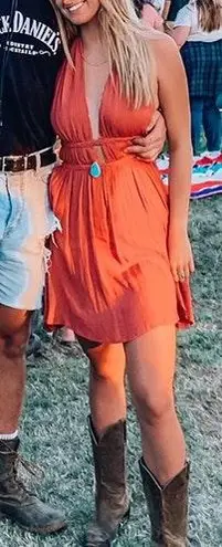 I got this dress in a boutique in Malibu. I’ve worn it twice and got sooo many compliments. I wore it to a wedding and a country concert...easy to dress up or down. It features a pretty braid that wraps around a low cut front and missing back. Great condition!