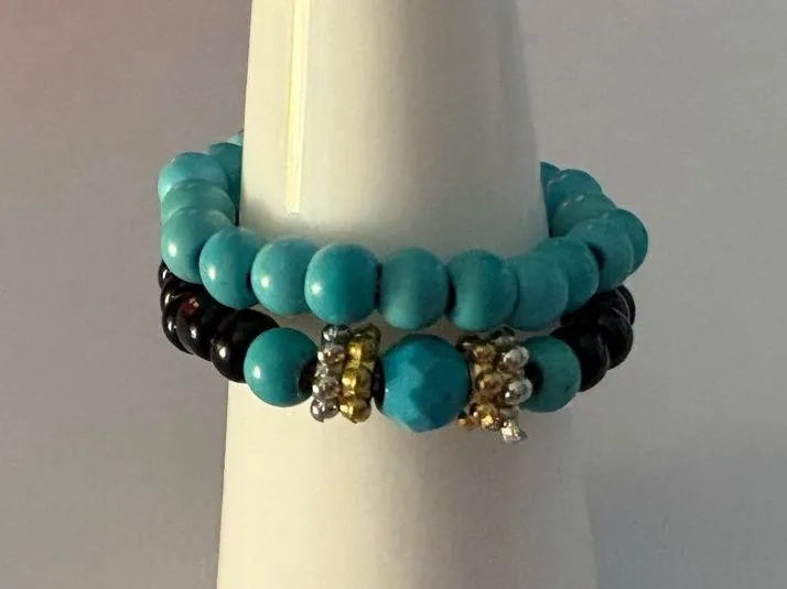 Elevate your style with our NEW 2-Piece Turquoise Stone & Gold Beaded Stretch Elastic Toe Finger Rin... Show more