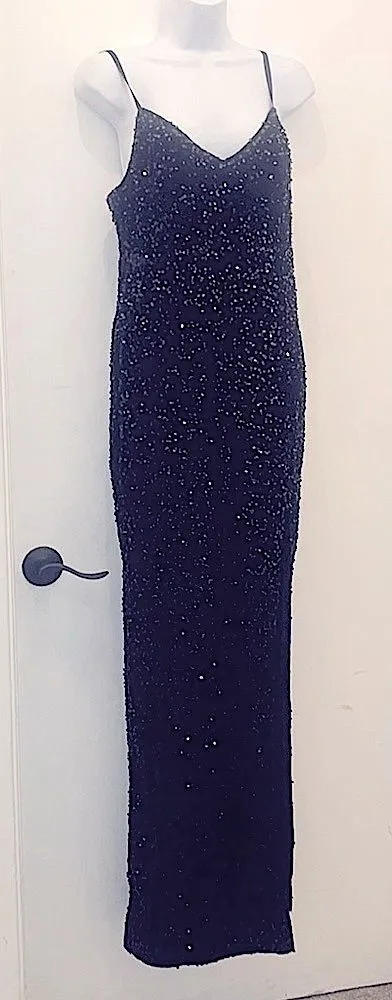 New spaghetti straps velvet silver sequin dress in black size Large maxi length In excellent new c... Show more