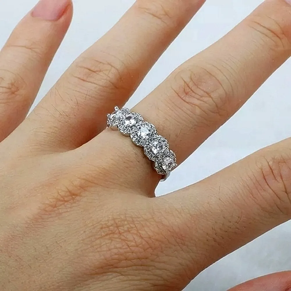 Gorgeous Lab Created Diamonds That Look Like the Real Thing! Crystal Clear AAAA CZ Wrapped in a Halo w/ Round Cut Stones Set in a Solid 925 Sterling Silver Band. _ Brand New _ Hallmark: 925 _ No Tarnish _ Size: 6 & 7 _ Lead & Nickel Free _ Gift Box or Bag _ Free Shipping $80 SAME/NEXT DAY SHIPPING Feel Confident Buying, Wearing and Gifting Our Jewelry ♡۵