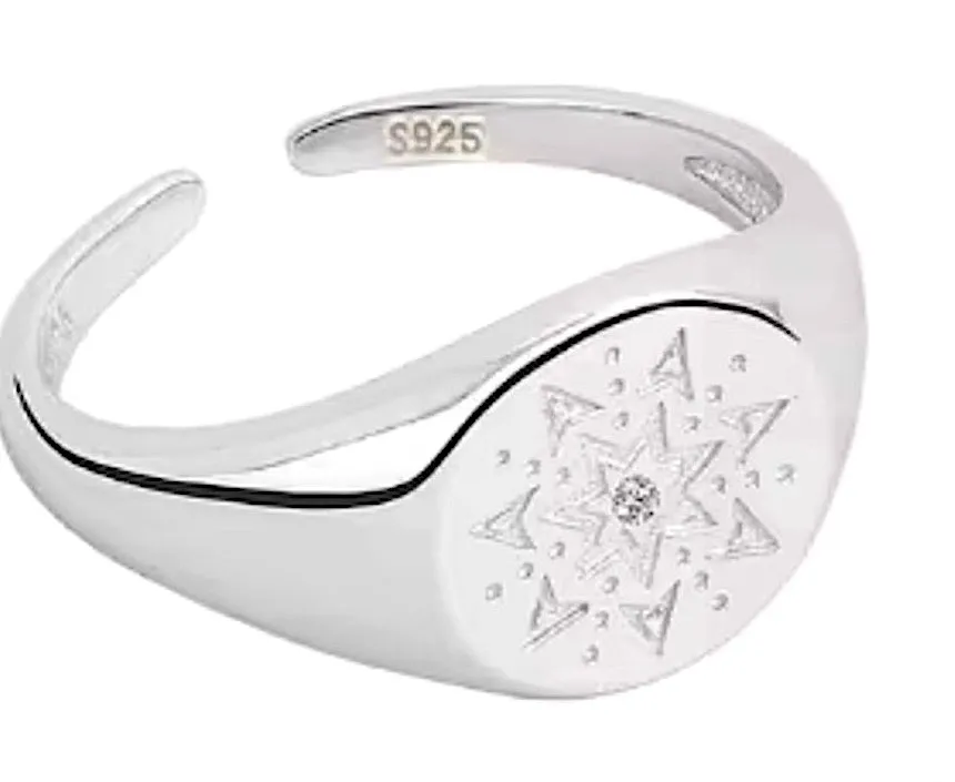 Introducing our latest addition to the world of women’s fashion - the NEW Women’s White Gold-Plated S925 Signet Ring. This stunning piece of jewelry is perfect for adding a touch of elegance and sophistication to any outfit. Crafted with high-quality materials, this ring features a beautiful white gold-plated finish that exudes luxury and class. The s925 stamp ensures its authenticity, making it a valuable addition to your collection. The star-shaped melee design adds a unique and eye-catching element to the ring, making it stand out from traditional signet rings. Its adjustable size makes it suitable for all finger sizes, providing a comfortable fit for every wearer. Not only does this ring make a stylish statement, but it also holds significant meaning. In ancient times, signet rings were used as a symbol of authority and power, making this piece perfect for confident and ambitious individuals. - White gold-plated finish - Star-shaped melee design - Adjustable size - Authentic s925 stamp #WomensJewelry #WomensFashion #LuxuryAccessories #StatementPiece