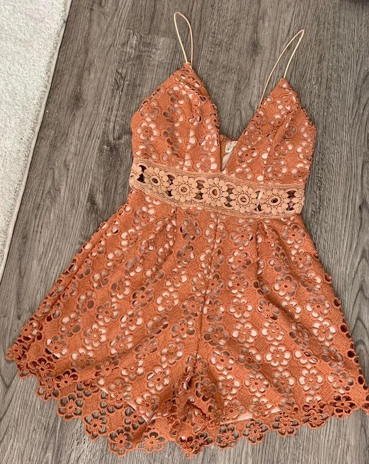 Boutique Flower Lace Romper, Never Worn Tan Size 8 - $20 (69% Off Retail) - From Brenda