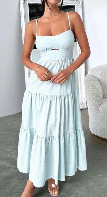 Would fit like a midi or maxi dress depending on height. I’m 5 ft 7 and it’s a midi on me, but would be a maxi on anyone around 5 ft 3. So comfy. Light weight, but heavy enough that it will not be blown up by the wind. Cutout is classy and good for a hot day. Very comfortable.