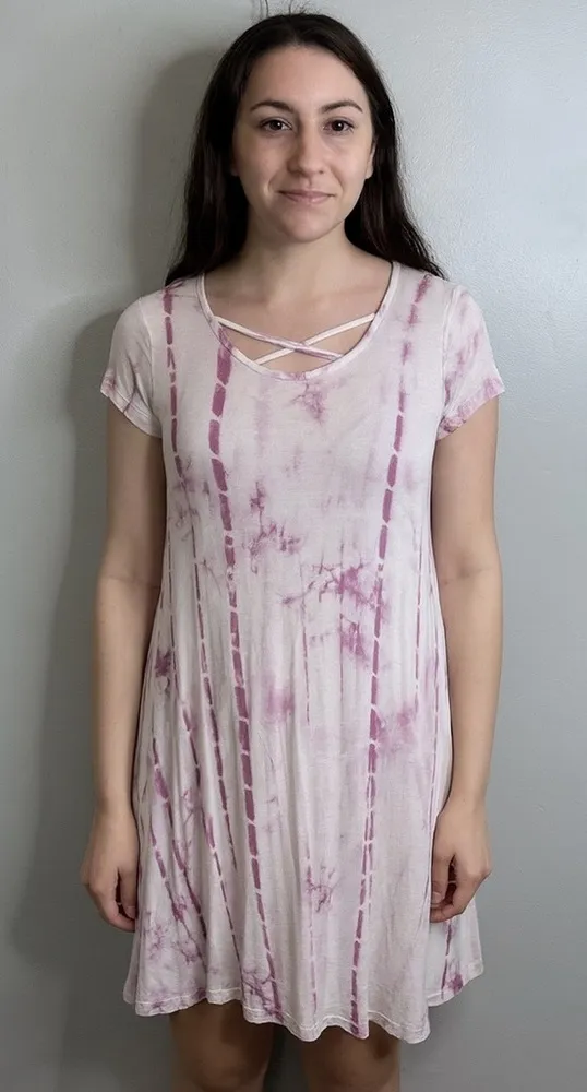Tie Dye Oversize Tunic Dress with Criss Cross Back. Pink White Small - $18 - From My Sisters Closet