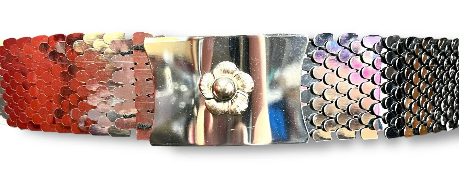 Wide Scale Stretch Belt Flower Buckle Accent Silver Tone Vintage 80s 90s Condition: EUC Description... Show more