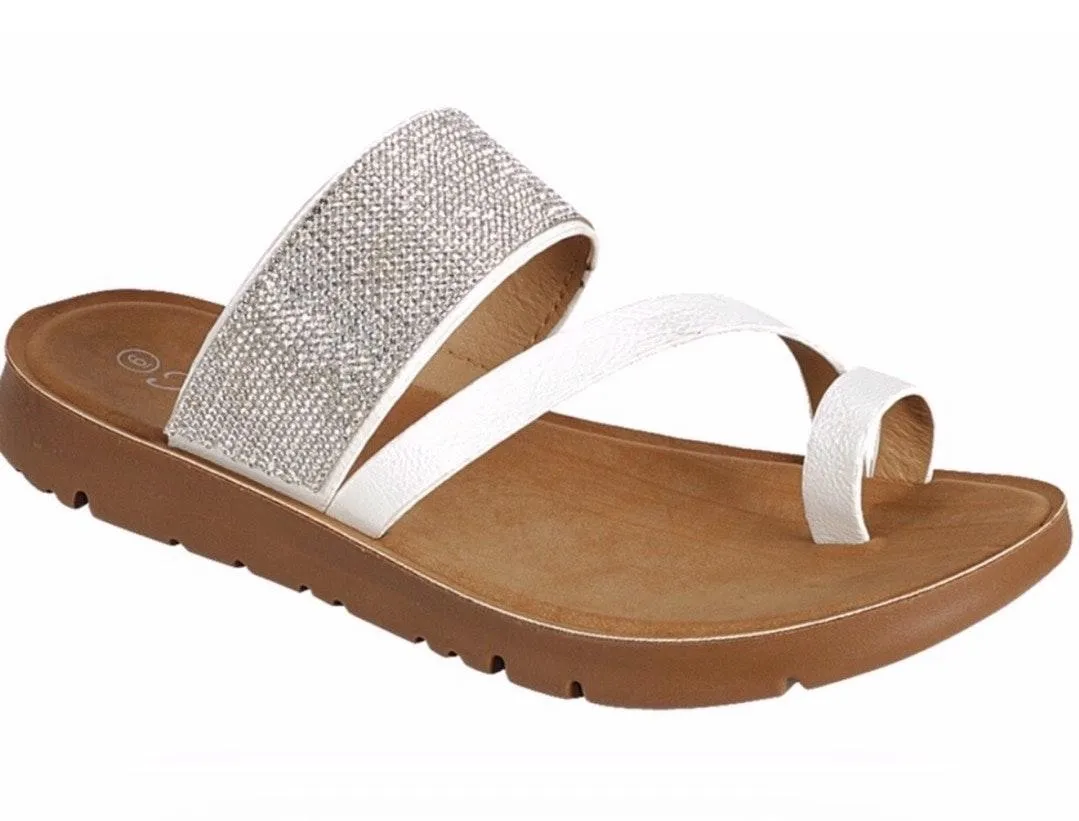 Boutique White Rhinestone Toe Ring Slide Sandals Size 9 - $22 (62% Off Retail) New With Tags - From Pretty Girl Swag