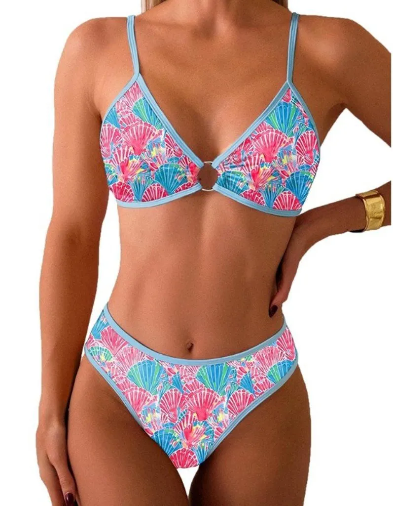 US size: XS (0-2) - Happy to provide measurements upon request . Fabric: The sexy swimwear is made of 82% polyester, 18% elastane. high elasticity, smooth, soft and comfortable to wear. Design: Adjustable spaghetti straps bikini top, O-ring linked front, removable push up padded cups, offers great support and enhance your shape. clasp closure at back, retro ditsy floral printed mid waist cheeky bikini set giving you a chic look. Garment Care: Regular Wash. Recommend with Cold Water. Do not Use Bleach. Do not Tumble Dry.