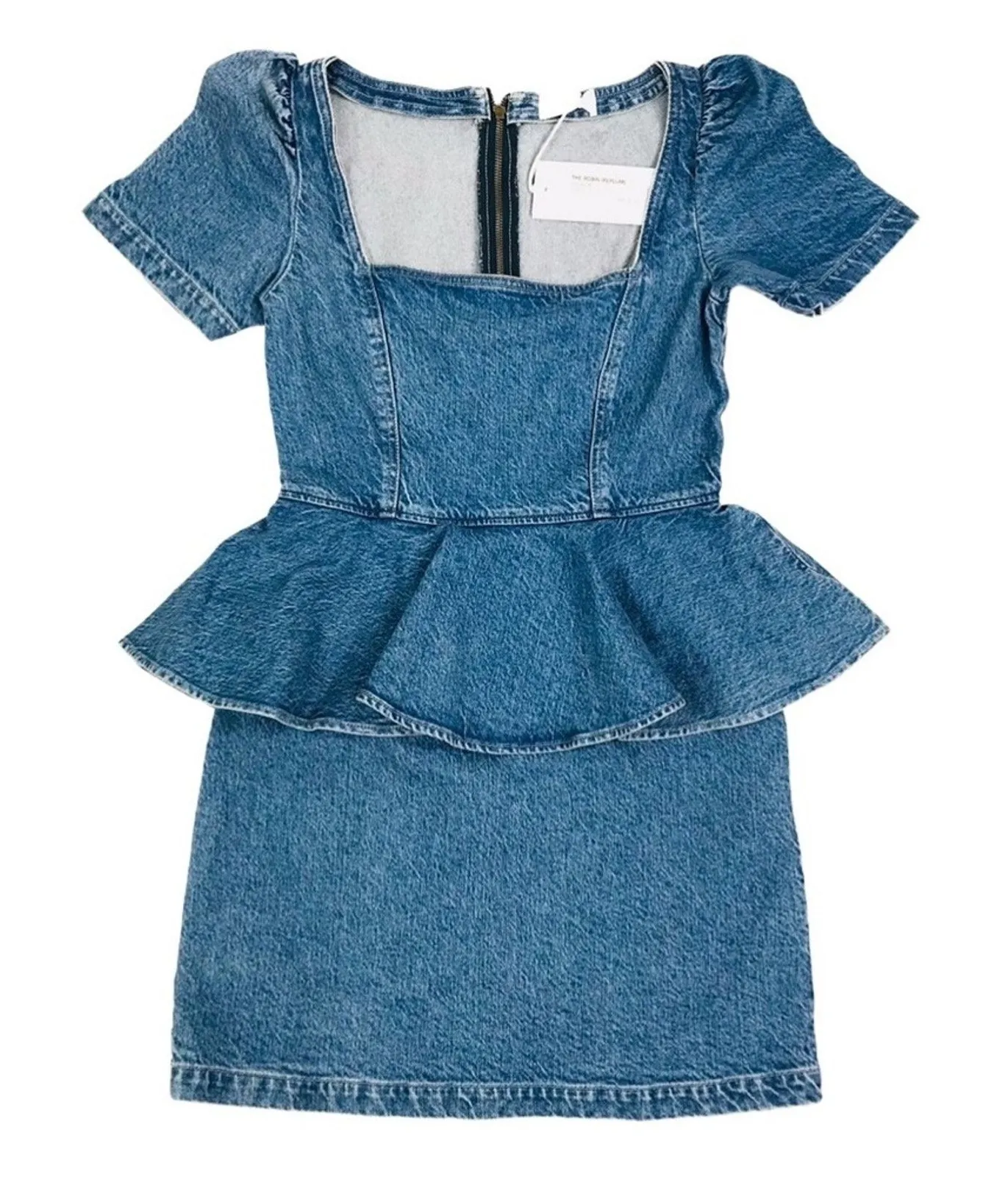BOYISH Denim Dress Sz 4 Peplum Stretch Puff Sleeve Organic Coquette Preppy Feminine NWT Size 4. NWT. Please look at measurements - Color medium wash. - Square Neckline. - Puff sleeves. - Peplum detail. - Bodycon style. - Back zipper closure. - Stretch denim fabrication. Measurements in my pics. waist 28" 66% organic cotton. 33% tencel 1% recycled elastane