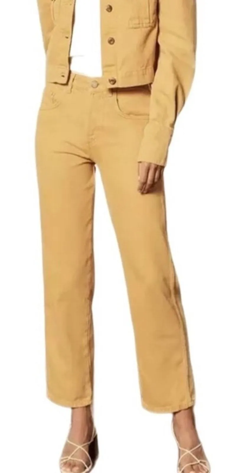 Size 26. NWT - Color gold rush. - Relaxed. - High rise. - Straight leg. - Cropped silhouette. - Button fly closure. - Front Pockets. - Soft organic cotton fabrication Approx waist 28” inseam 10.5” inseam 27.5” leg opening 15” 60% organic cotton, 40% tencel 'Vintage details above all things. The Timmy in Gold Rush is a high waisted rigid straight leg jean with a novelty back yoke that brings a unique and distinct design. Our signature patch and rich golden yellow color are sure to make a statement. These upcycled jeans include OCS Certified Organic Cotton and Tencel™ Lyocell, a natural raw material from eucalyptus trees that is responsibly produced to minimize environmental impact, reducing its carbon footprint and water usage.'