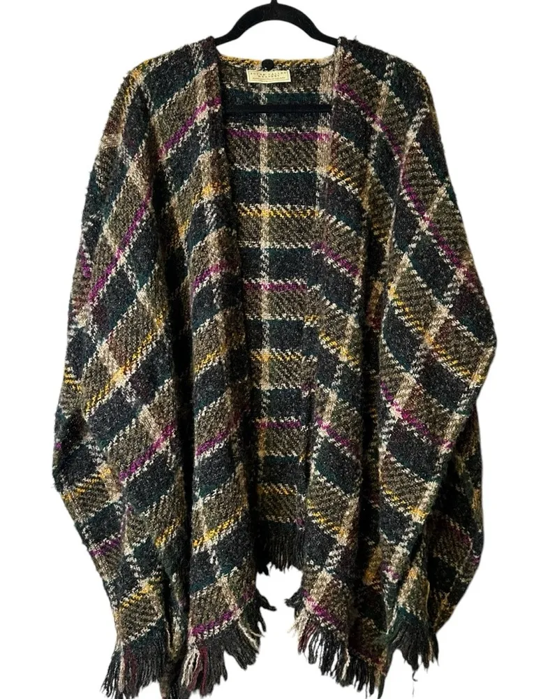 Boyne Valley Weavers Plaid Wool Acrylic Blend Fringed Sweater Shawl Cape Wrap Handcrafted in Ireland... Show more