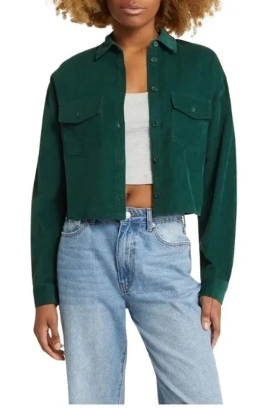 Add a stylish layer to your wardrobe with this BP Shirt Jacket in a rich green hue. The cropped desi... Show more