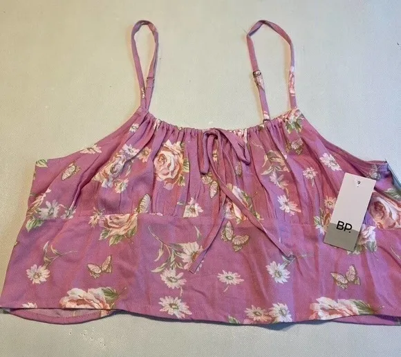Floral print cami top by BP featuring a delightful pattern of roses, daisies, and butterflies set ag... Show more