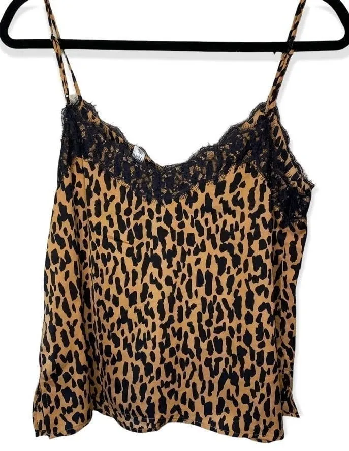 Stylish cami tank featuring a bold leopard print design. This sleeveless top is accented with delica... Show more