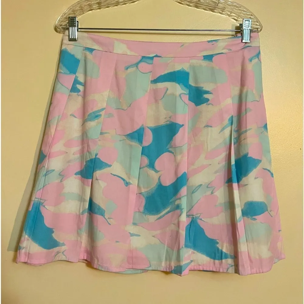 A gorgeous skirt from Nordstrom brand BP. Featuring a pink and blue painted Camo pattern. Side zippe... Show more