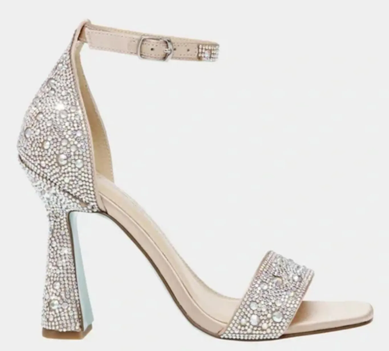 Betsey johnson Dani Evening Sandals Womens Size 7 Ankle Strap Rhinestone Sparkly Glamour Excellent... Show more