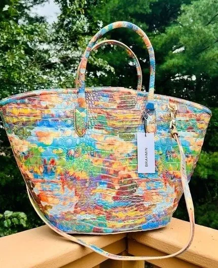 Make a bold statement with this brand new with tags Brahmin Mira Tote in the retired Colorado Melbourne print, a vibrant multicolor design that blends artistic expression with Brahmin’s signature croc-embossed leather craftsmanship. This discontinued colorway is highly sought after and increasingly difficult to find in new condition. Structured yet spacious, the Mira tote is ideal for everyday use, travel, or work, offering exceptional organization and timeless luxury appeal. Details Brand: Brahmin Style: Mira Tote / Shoulder Bag Color / Print: Colorado Melbourne (Retired) Condition: New With Tags Material: Genuine croc-embossed leather Closure: Magnetic snap Exterior Features Dual rolled leather handles Removable adjustable shoulder strap Back slide-in pocket Protective footed base Includes original Brahmin dust bag Interior Features Fabric-lined interior Organizer pocket Zip wall pocket Jewelry pocket Pen pocket Key clip Measurements (Approx.) Width: 20 inches Height: 12 inches Depth: 5 inches Handle drop: 5 inches Strap drop: 15 inches Why This Bag Is Special Rare retired Colorado Melbourne print Striking multicolor palette with high-gloss finish Versatile for daily use travel or work Highly collectible in new condition with tags Complete with original dust bag #brahmin #brahminmira #coloradomelbourne #retiredprint #luxurytote #leatherhandbag #designerhandbag #collectorbags #nwt #multicolorbag #statementbag