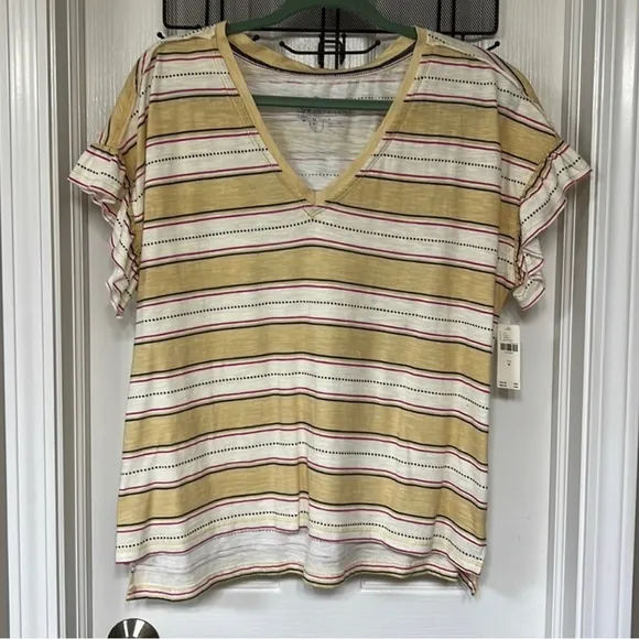 BRAND NEW Anthropologie Striped Vneck Tshirt Size M Yellow Size M - $20 New With Tags - From Stephanie