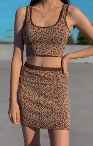 This two piece set is so stylish and fun! You can dress it up or down and will be for sure making a statement where ever you go! The material is stretchy with a bodycon fit and gives your body shape. You can even mix and match these pieces to make any trendy outfit! Cheetah print is in so be sure to hop on the trend! THIS IS A TWO PIECE SET! IT INCLUDES TOP AND SKIRT TOGETHER! Taupe Brown Color 70% Rayon / 30% Nylon Tank and Mini Skirt Contrast Trim Stretchy Unlined