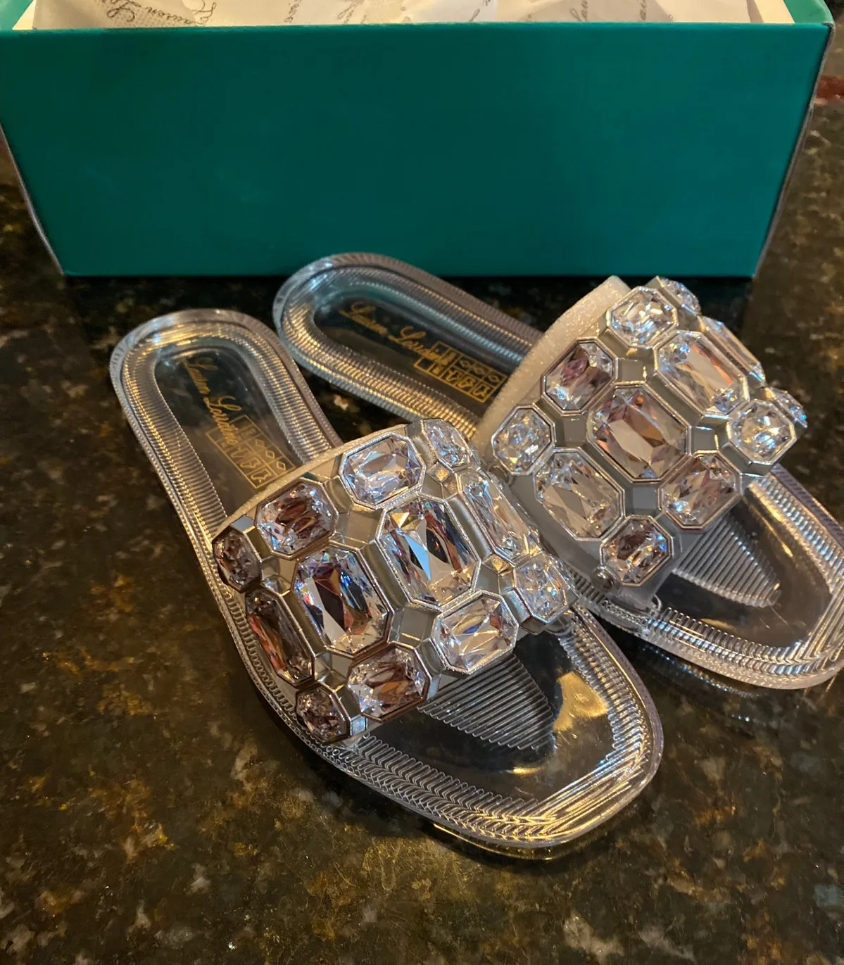 Brand New Lauren Lorraine Women's Size 6 Clear Stone Flat Jewel Sandals Slip On Silver - $40 New With Tags - From Christine