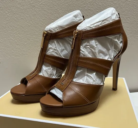 Brand New in Box Michael Michael Kors Berkeley Luggage Brown Leather Heel Shoes Size 7.5 Features:... Show more