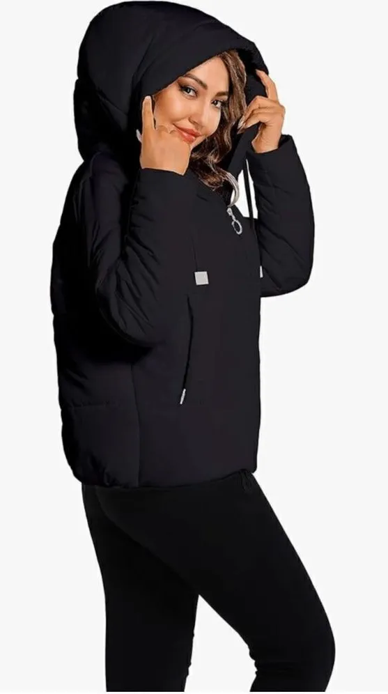 Brand New Womens Hujoin Hooded Black Puffer Winter Jacket Coat - Sz L Size L - $35 - From Amber