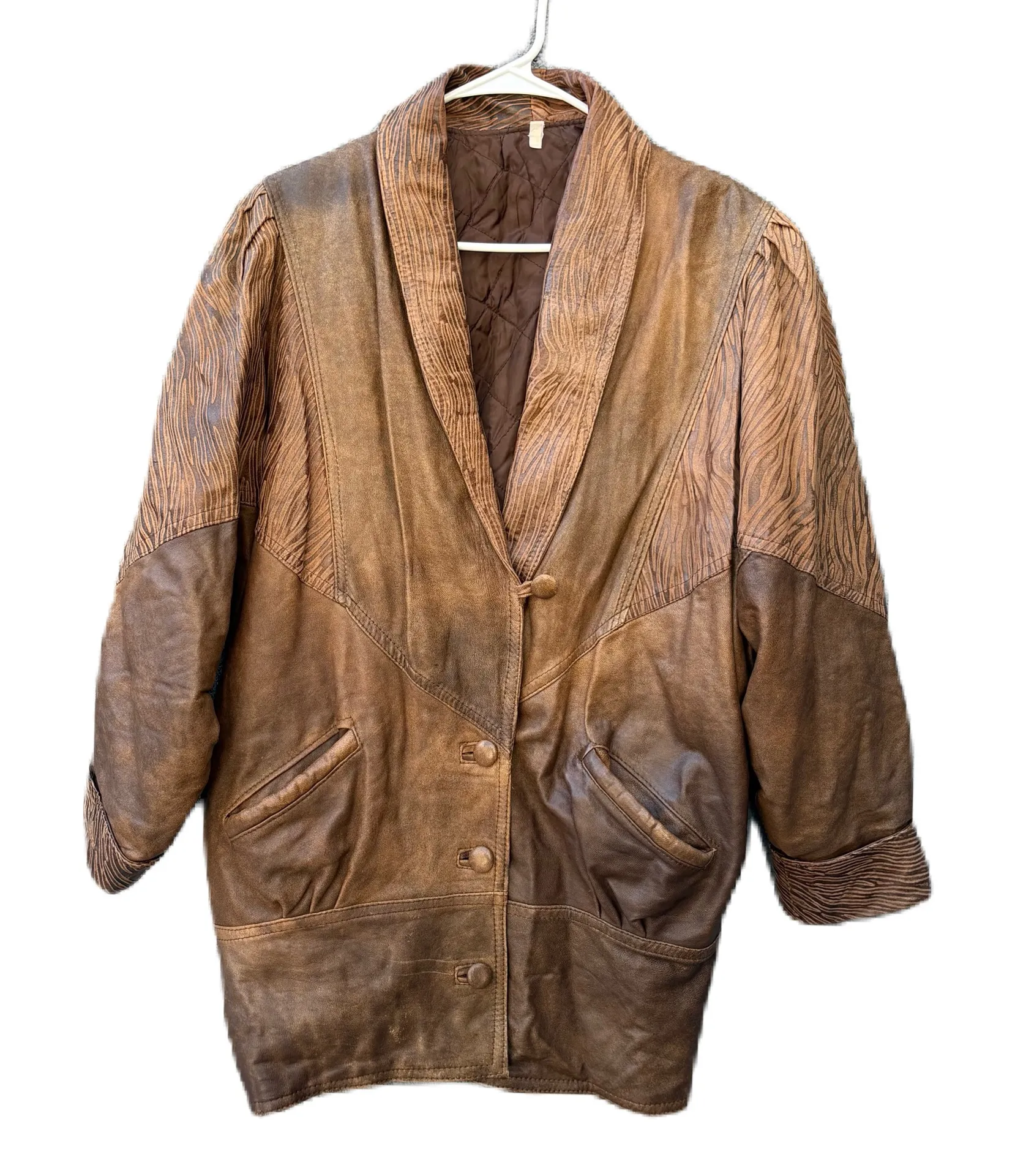 Vintage Vera Pelle Italian Brown Leather Animal Print Zebra Luxury Long Coat Size XL - $100 - From Julz